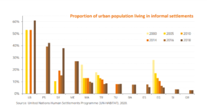 Cities - maps and graphs Proportion of urban population living in slums, informal settlements, or inadequate housing (SDG Indicator 11.1.1) Map Graph Status of UNESCO world heritage sites Map Graph Waste generated and treated by type of waste and treatment type Map Graph