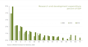 Governance - maps and graphs Number of National Strategies for Sustainable Development adopted or updated [and number of updates since first edition] Map Table Proportion of bank credit allocated to the private sector – Existence of alternative financing systems using bank credit Map Graph Research and development expenditure as a proportion of GDP (SDG Indicator 9.5.1) Map Graph Number of countries that have clear mechanisms in place for ensuring public participation and guaranteeing public access to environmental information Map Graph Number of countries that have National Strategies/Action Plans on Education for Sustainable Development in place Map